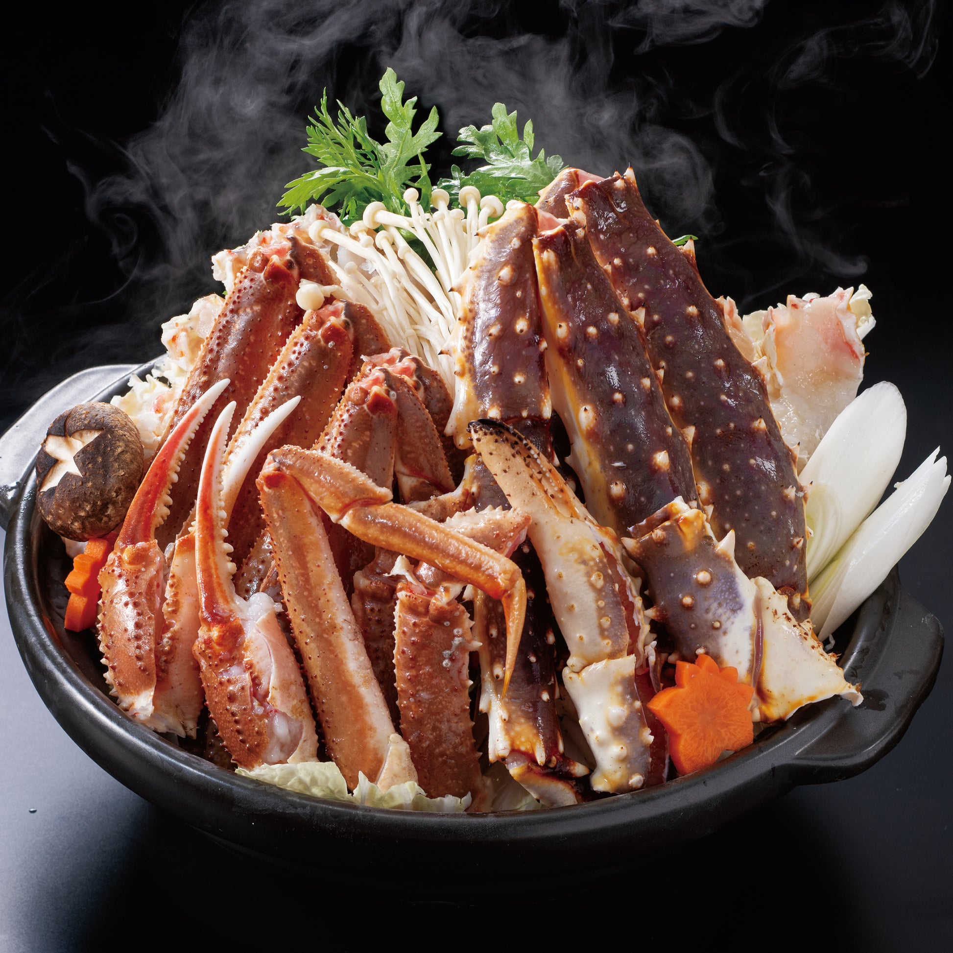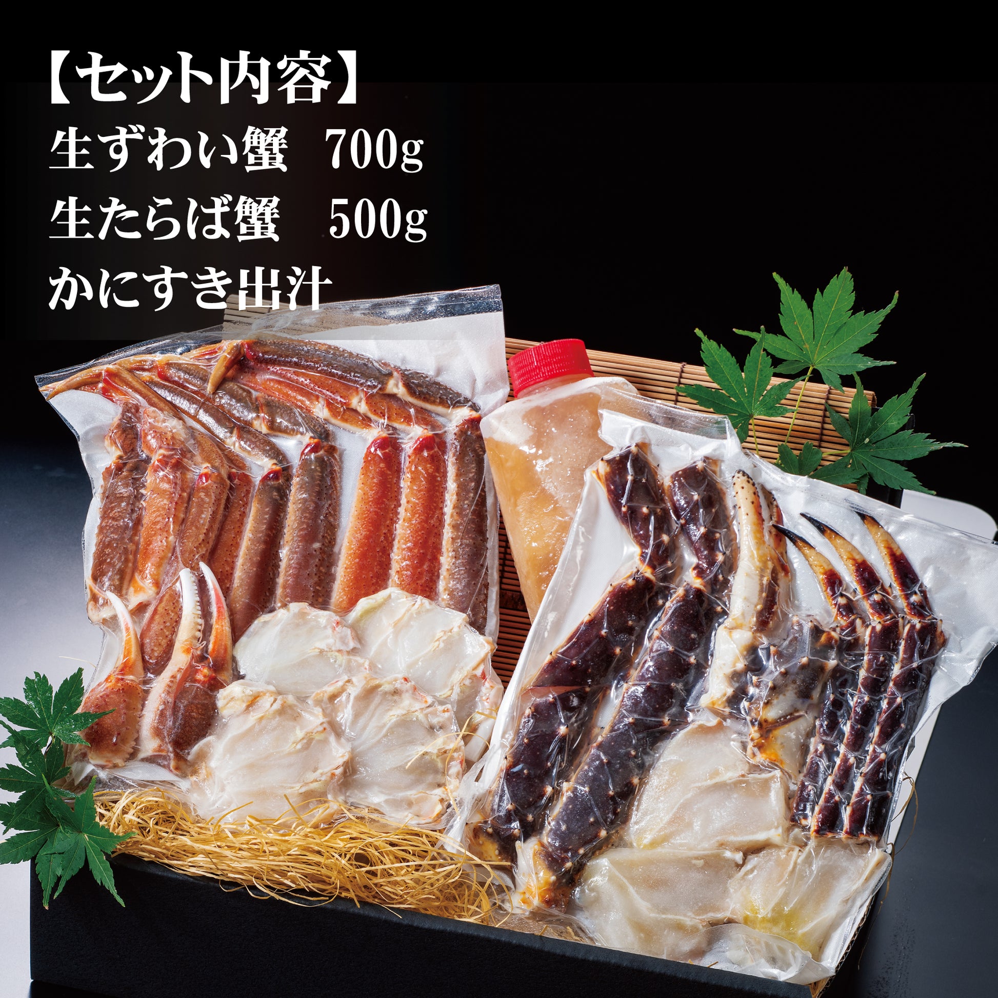 生ずわい蟹700g、生たらば蟹500g。蟹が1.2kg入った食べ応え抜群のかにすき鍋のセットです。