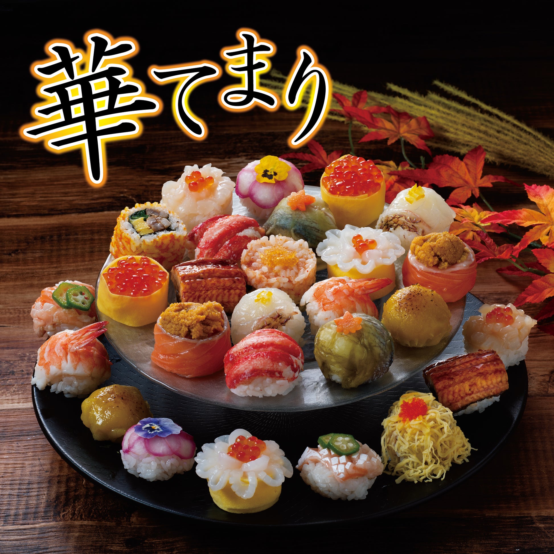 ご飯(米(国産))、サンマ、調味酢、ゆでがに、鰻長蒲焼、いくら醤油漬け、アトランティックサーモン(ノルウェー、養殖)、スイートポテトフィリング、ホタテ貝柱、銀鮭、紋甲イカ、ラディッシュ、煮穴子、真鯛、生うに、寿司えび、牛肉ばら、刻み錦糸玉子、辛子めんたいこ、浅漬けの素、平錦糸、玉子焼、高菜しょうゆ漬、ホンシメジ、魚卵醤油漬、魚介類加工品、海苔、オクラ、昆布加工品、ニンジン、山椒、出し昆布、食用乾燥花、ゆず皮、岩塩/安定剤(加工澱粉、ソルビット)、調味料(アミノ酸等)、トレハロース、酒精、着色料(カラメル、クチナシ、紅麹、V.B2、ウコン、カロチノイド、黄4、黄5、赤102、赤106、赤40、野菜色素)、pH調整剤、乳酸Na、甘味料(甘草)、増粘剤(加工澱粉、増粘多糖類)、ナイアシン、ピロリン酸Na、酵素、香辛料、香料、酸化防止剤(V.C)、酸味料、乳化剤、発色剤(亜硝酸Na)、保存料(ソルビン酸K)、(一部にえび・かに・小麦・卵・いか・いくら・牛肉・さけ・さば・大豆・豚肉を含む)
